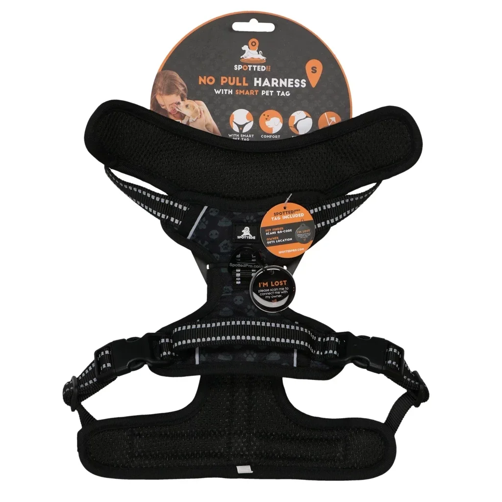 Ce harnais est équipé du Spotted Pro Tag, un système innovant d'identification des chiens. Le Spotted Pro Tag est une médaille numérique pour chien qui peut être facilement scannée grâce à un code QR ou une puce NFC. L'application gratuite vous permet d'inclure toutes vos coordonnées et celles de votre chien, telles que vos coordonnées et des informations sur votre chien. Lorsque votre chien s'enfuit et est retrouvé, vous recevez une notification indiquant que le chien a été scanné. Le trouveur verra alors vos coordonnées et les informations sur votre chien que vous souhaitez partager. Cela lui permet de vous contacter et de vous rendre votre chien.